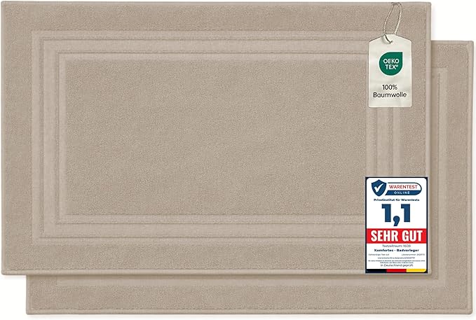 Komforttec Bath Mat Set, Terry Cloth Shower Mat, Washable Shower Mat & Bath Mat, 800 g/m² & 100% Cotton, Absorbent & Quick-Drying, , Sand/Beige