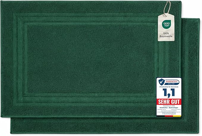 - High-quality bath mats made from 100% cotton with two woven borders. Made from 100% soft, tear-resistant cotton with a fabric weight of 800 g/m²