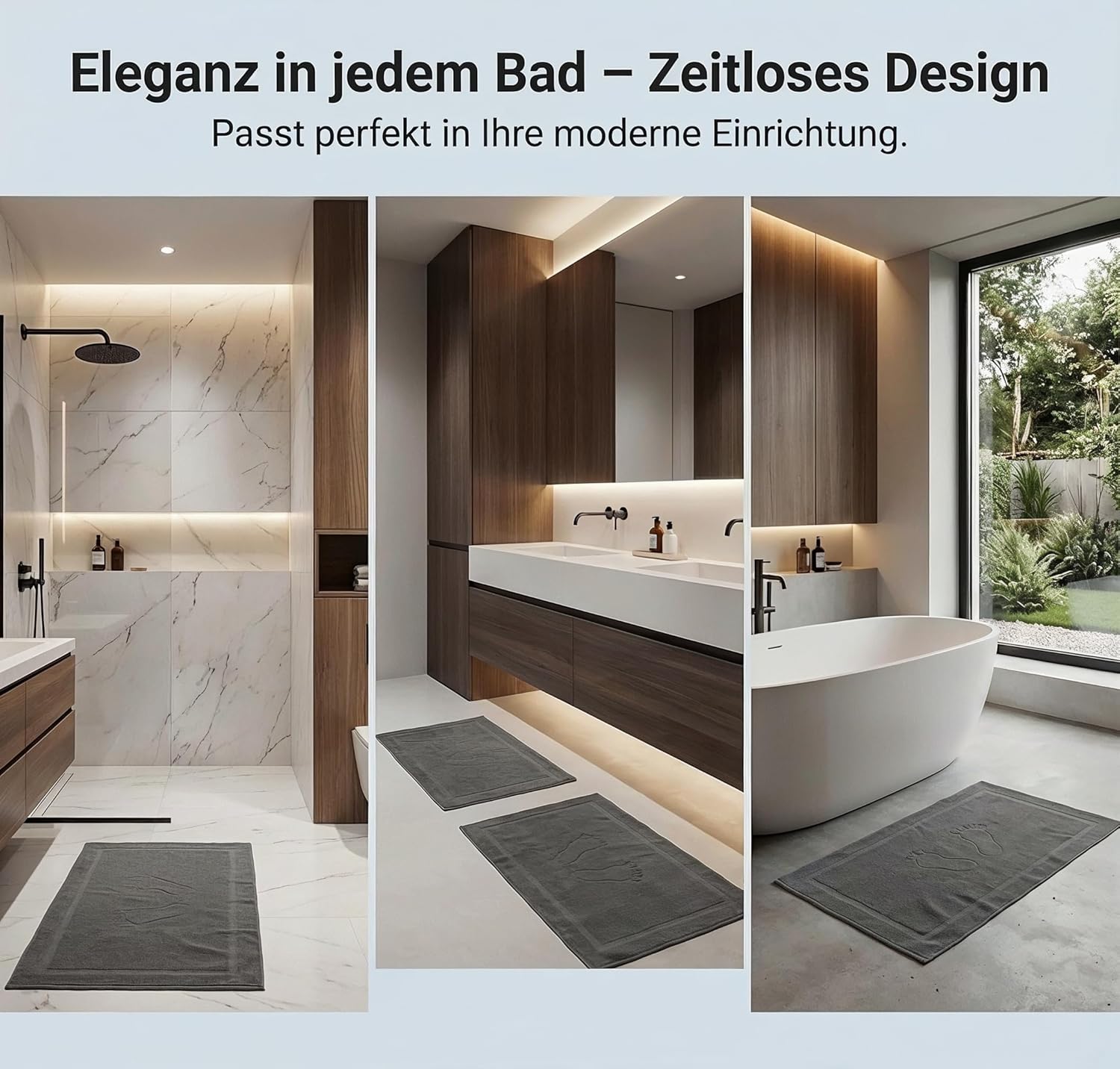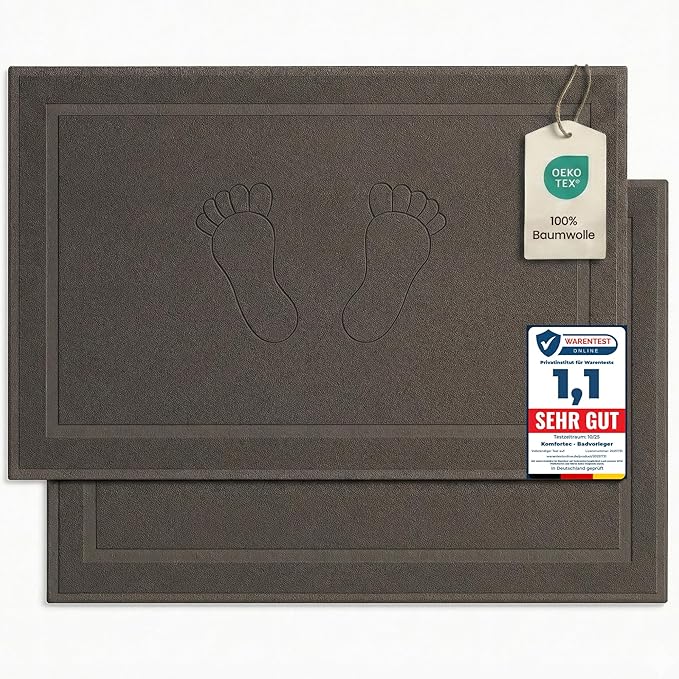 - The bath mat set offers the best feel-good comfort thanks to its special design. It is skin-friendly, fluffy, absorbent and extremely durable