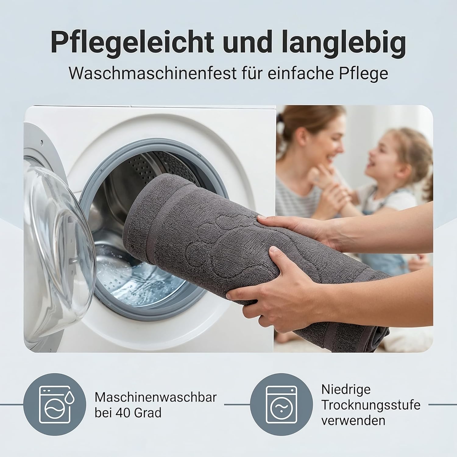 - Washable at 40°C. Iron on medium heat. Do not use bleach. Tumble dryer safe – can be tumble dried on a low temperature