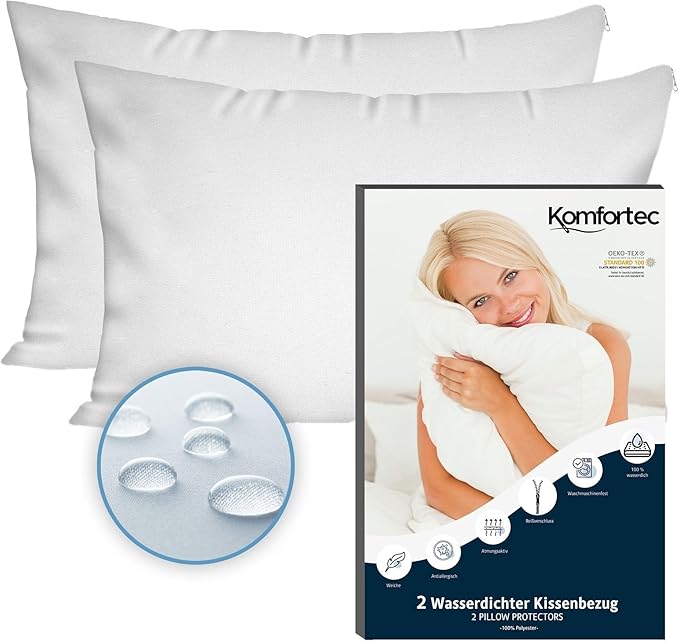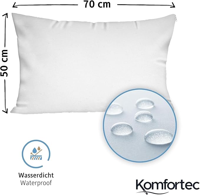 غطاء وسادة Komfortec مقاوم للماء 50 × 70 سم بسحاب، قابل للتنفس، مضاد للعث،